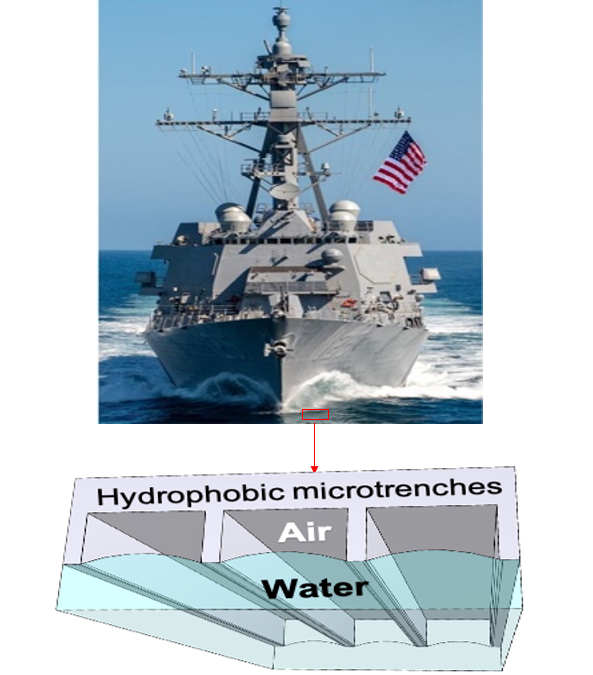 Professor CJ Kim, in collaboration with Prof. Paolo Luzzatto-Fegiz at UC Santa Barbara, has won a $1M (18 months) research award from the Defense Advanced Research Projects Agency (DARPA). Managed by the Defense Science Office (DSO) of DARPA, the funded research is to help reduce hydrodynamic drag of ships that will increase speed, extend endurance, reduce fuel usage, and tame emissions. Leveraging their recent success in developing microtrench superhydrophobic surfaces and confirming their drag-reducing capability under a motorboat in nearby Marina del Rey, the research team led by Prof. Kim will develop a set of design tools that can predict if drag reduction is possible on a given engineered surface and, if possible, how much reduction is obtainable on the surface.